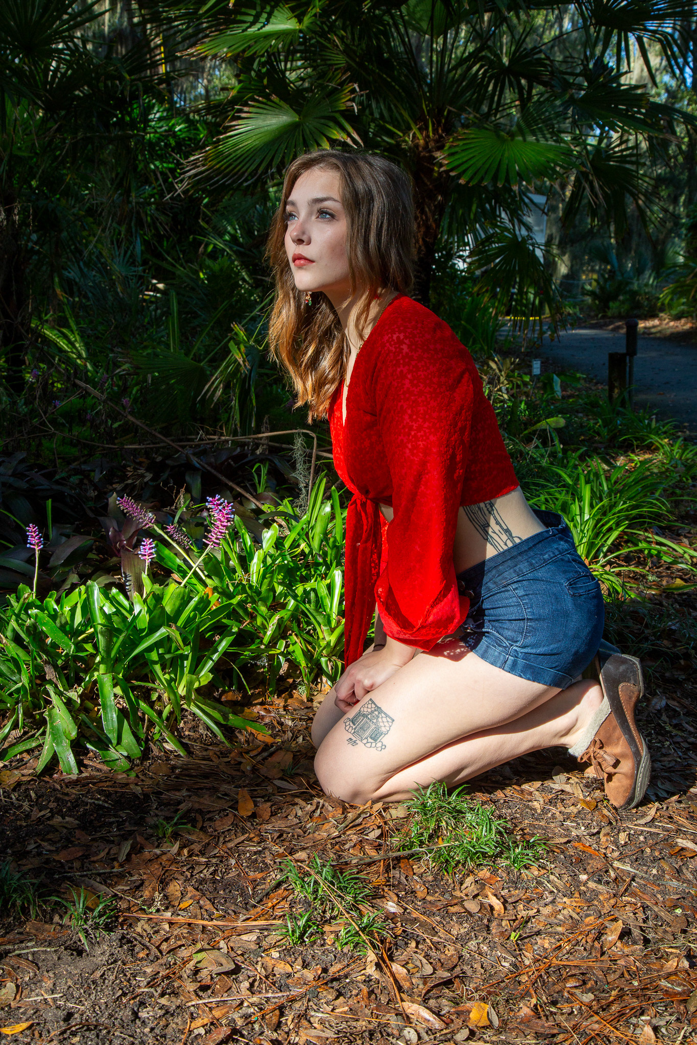 This is one of my personal projects. A friend of mine, Bella, wanted to add to her modeling portfolio, so I agreed to help her. We set up with a list of shoots to focus on using light and shadows in a natural setting. It made for both an interesting and fun experience trying to find the perfect spot as the light moved through the trees.